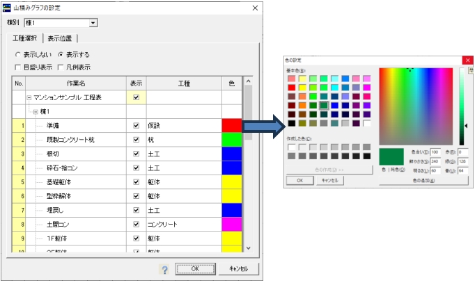 作図エリアに主要な作業線の主要工種バーを表示できるようにしました。